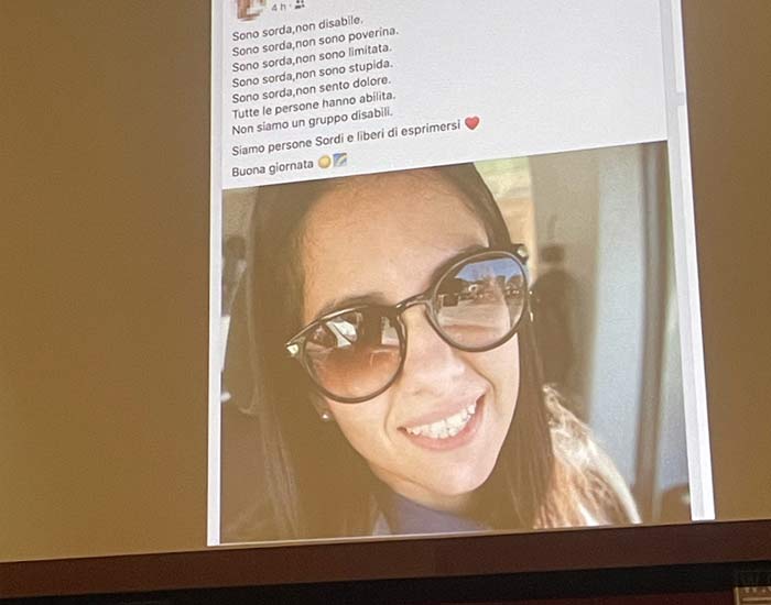 L’incontro tra Asia e Daniele Benincasa ha permesso di approfondire il concetto di limite da più punti di vista. La cecità o l’ipovisione, come l’ipoacusia, sono indubbiamente dei limiti, che possono essere superati se per prima la società stessa smettesse di considerarli “limiti disabilitanti”. Il messaggio di Asia è stato molto chiaro: no ai pregiudizi, no ai pietismi, sì alla collaborazione e al supporto del sistema sanitario e dell’assistenza sociale nel garantire sostegno e servizi affinché un limite non diventi un ostacolo insormontabile, da bollare con l’etichetta “disabile”. A supporto di questa posizione, Daniele Benincasa ha portato il suo contributo partendo da uno sfogo “social” di una giovane ragazza affetta da una grave sordità, ridimensionata grazie all’adozione di apparecchi acustici e all’assistenza di tecnici audioprotesisti. Nel suo post esprime e chiede a chiare lettere di andare oltre i limiti che il deficit uditivo impone, invitando tutti a farlo.
